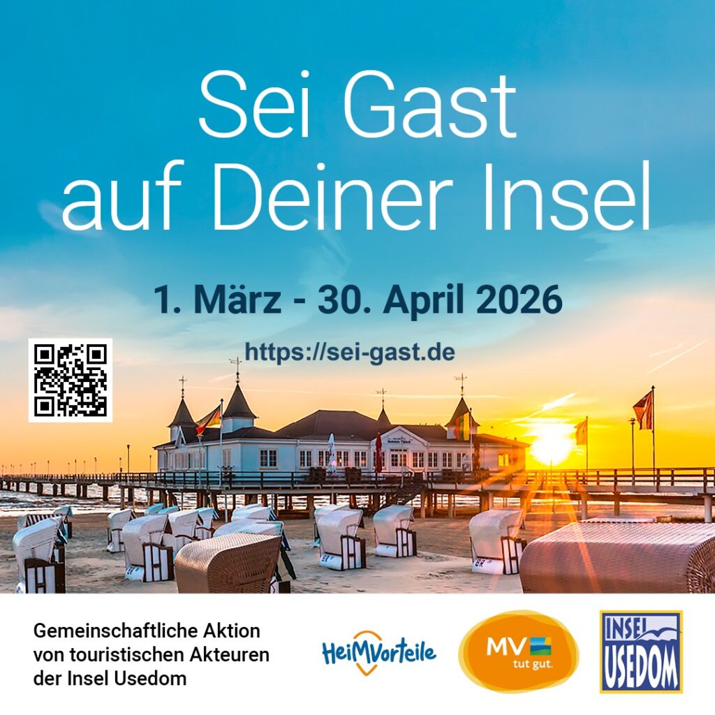 Seit Kurzem läuft nun die neue Saison der beliebten Aktion „Sei Gast auf Deiner Insel“. Mit der Initiative möchte der Tourismusverband der Insel Usedom Einheimischen und Inselbeschäftigten erneut die Möglichkeit geben, ihre Heimat aus der Perspektive eines Gastes neu zu entdecken – und gleichzeitig die touristische Nebensaison stärken.